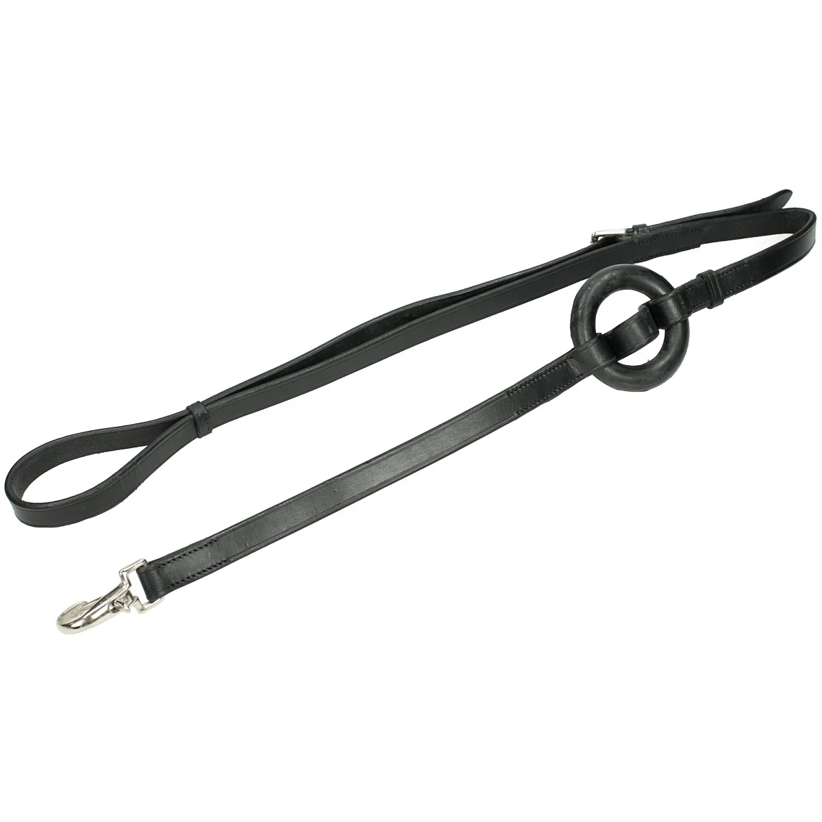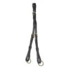 - bestaande uit twee leren riemen met in het midden een verende, rubberen ring