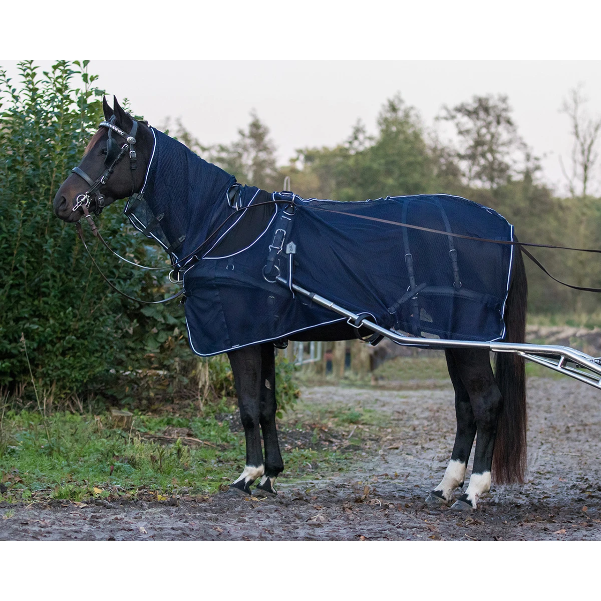 - de deken is voorzien van openingen voor het tuig